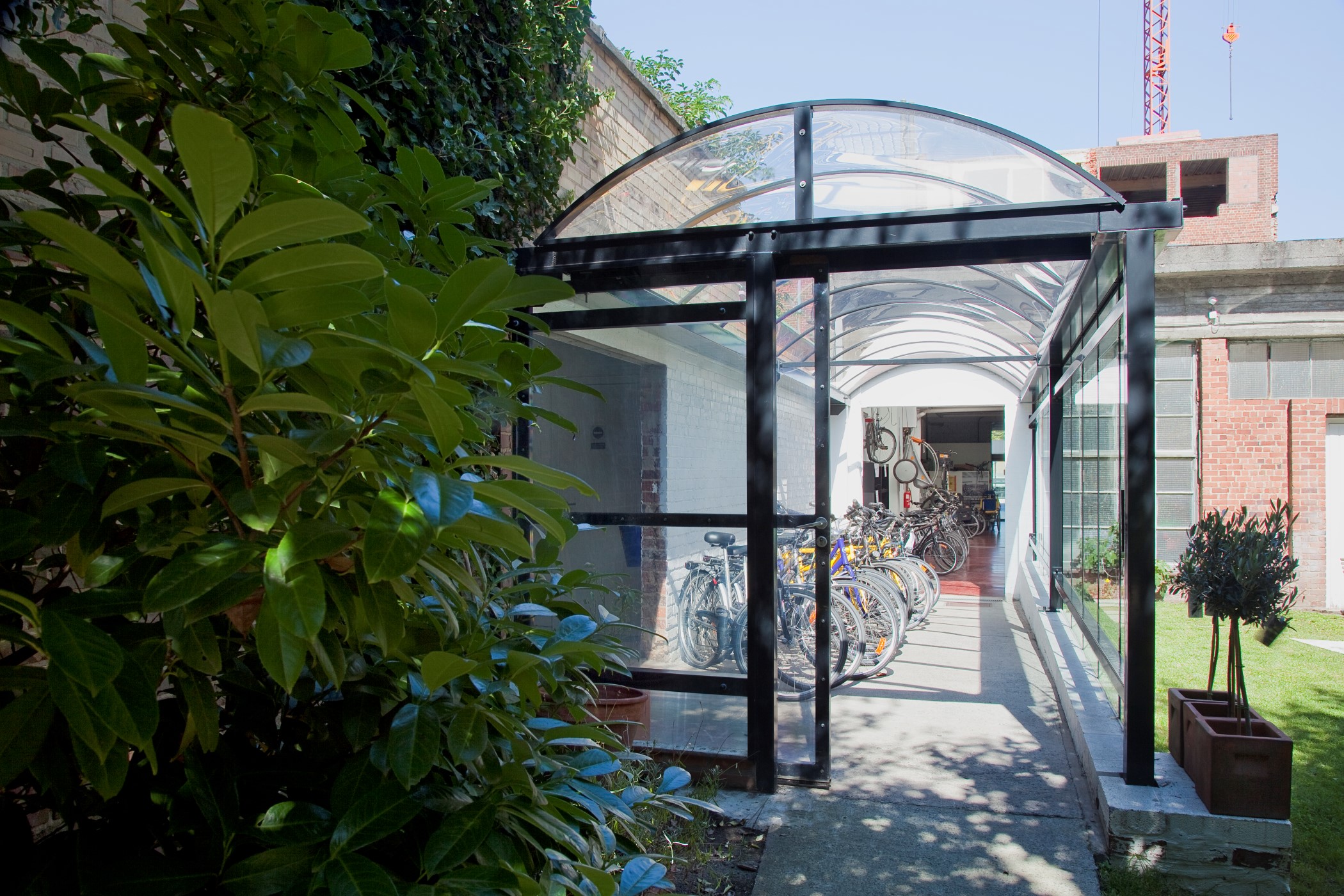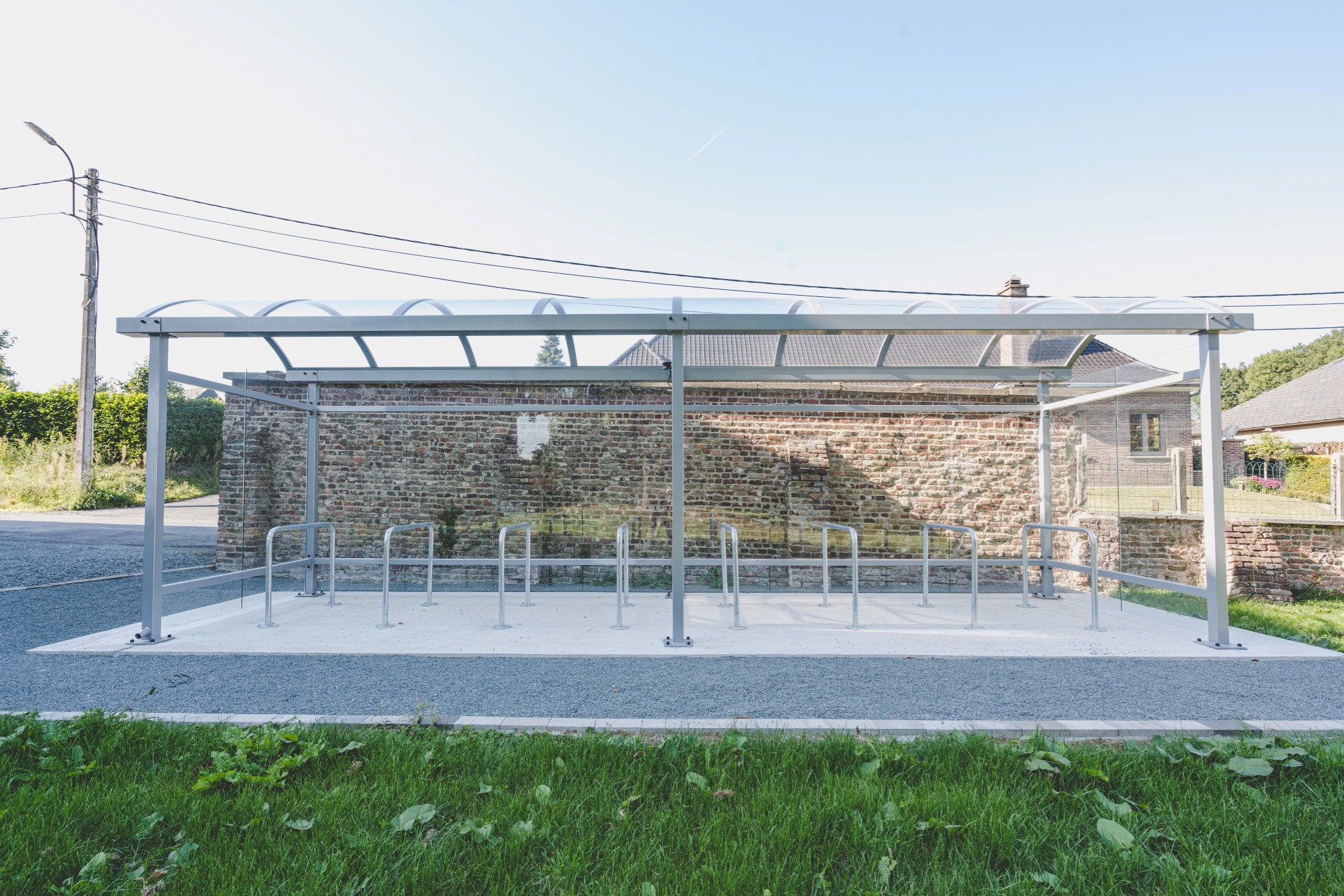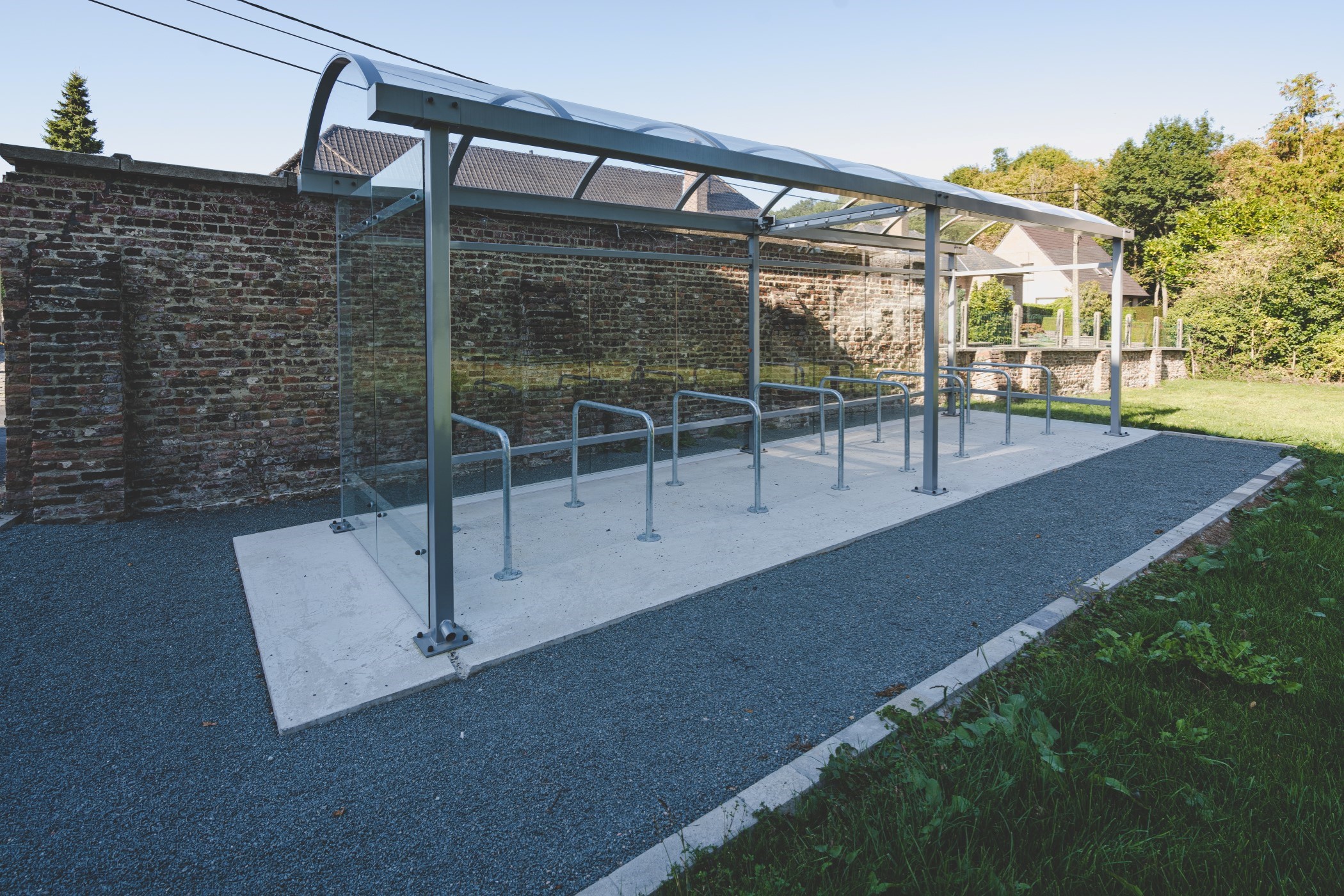Lucca is a multifunctional canopy with or without walls and a minimum number of columns. In addition, the canopy can be attached to an existing structure. This makes Lucca ideal as a bicycle shed. Furthermore, it can be combined with our bicycle racks and bicycle brackets and is equipped with an integrated rainwater drainage system.