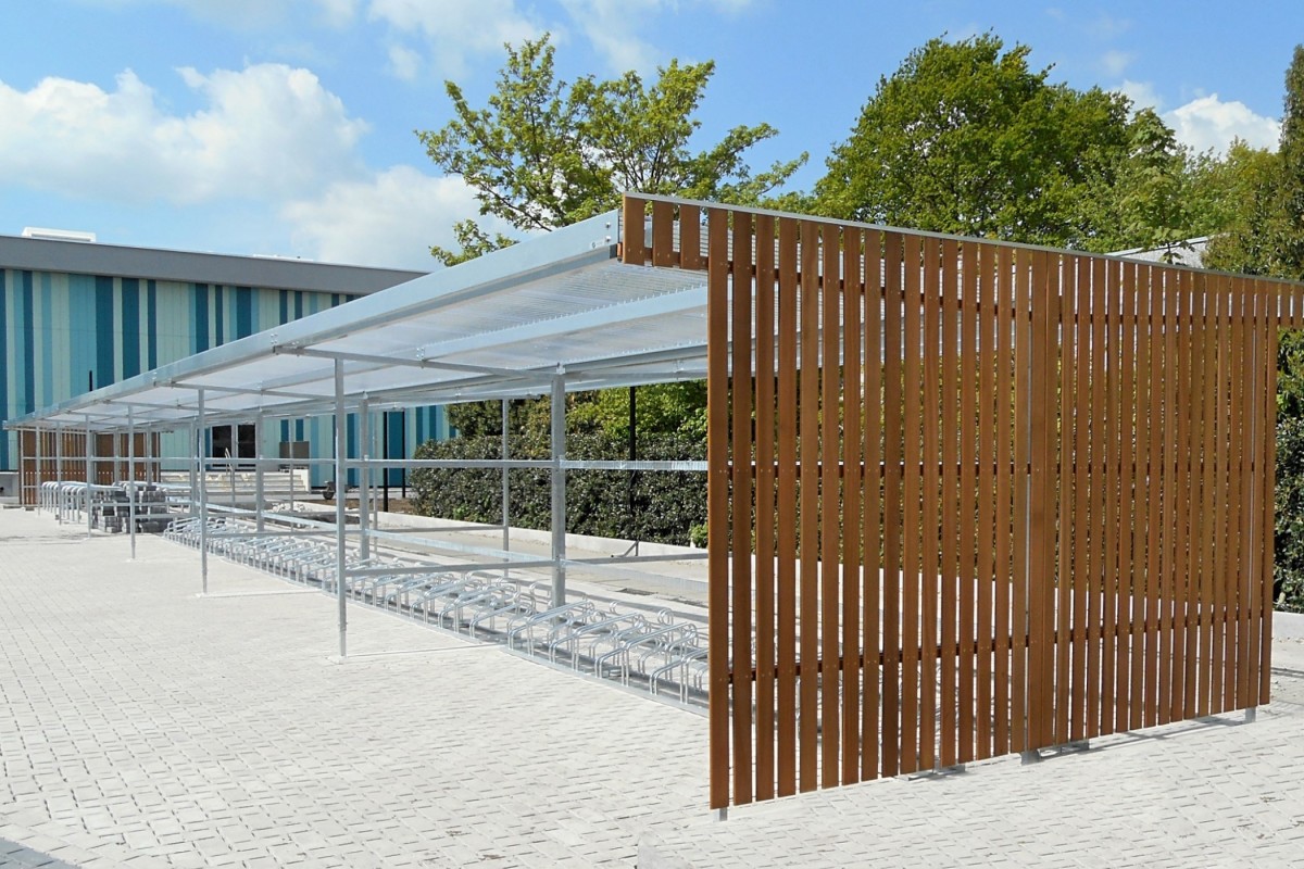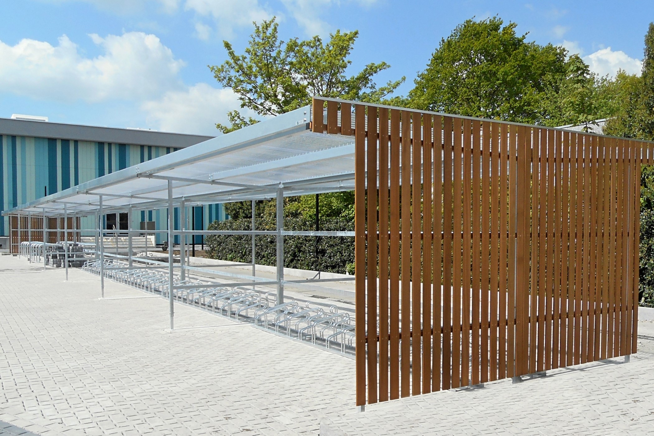 Duplopark is a simple, multifunctional, double-sided bicycle shelter. There is room for bicycles, mopeds and outsize bicycles. The combination of metal and wood gives this shelter a timeless appearance.